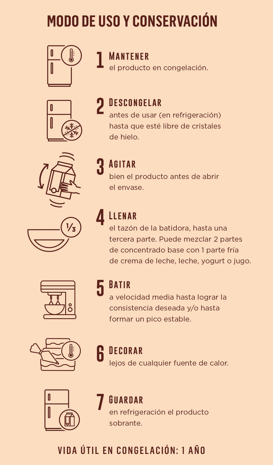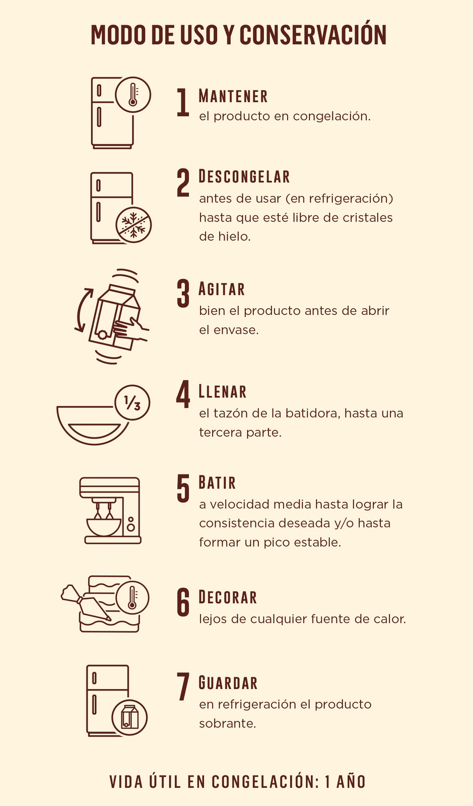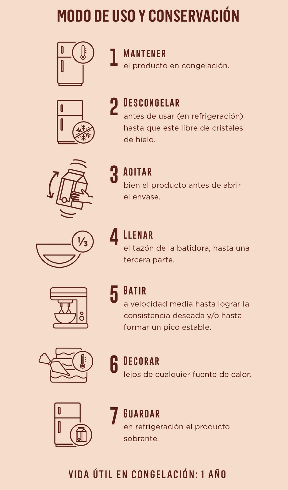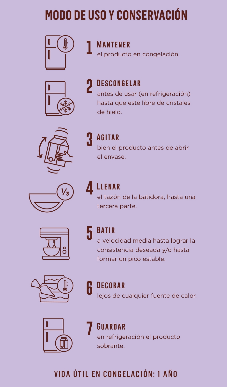 con un rico sabor a crema de leche, para decoración y relleno en pastelería.