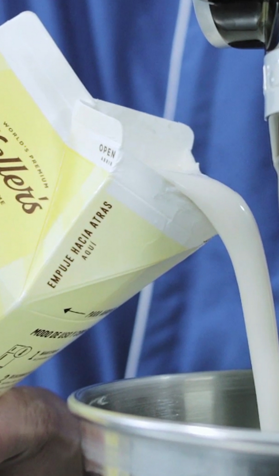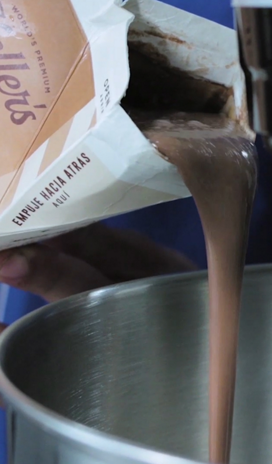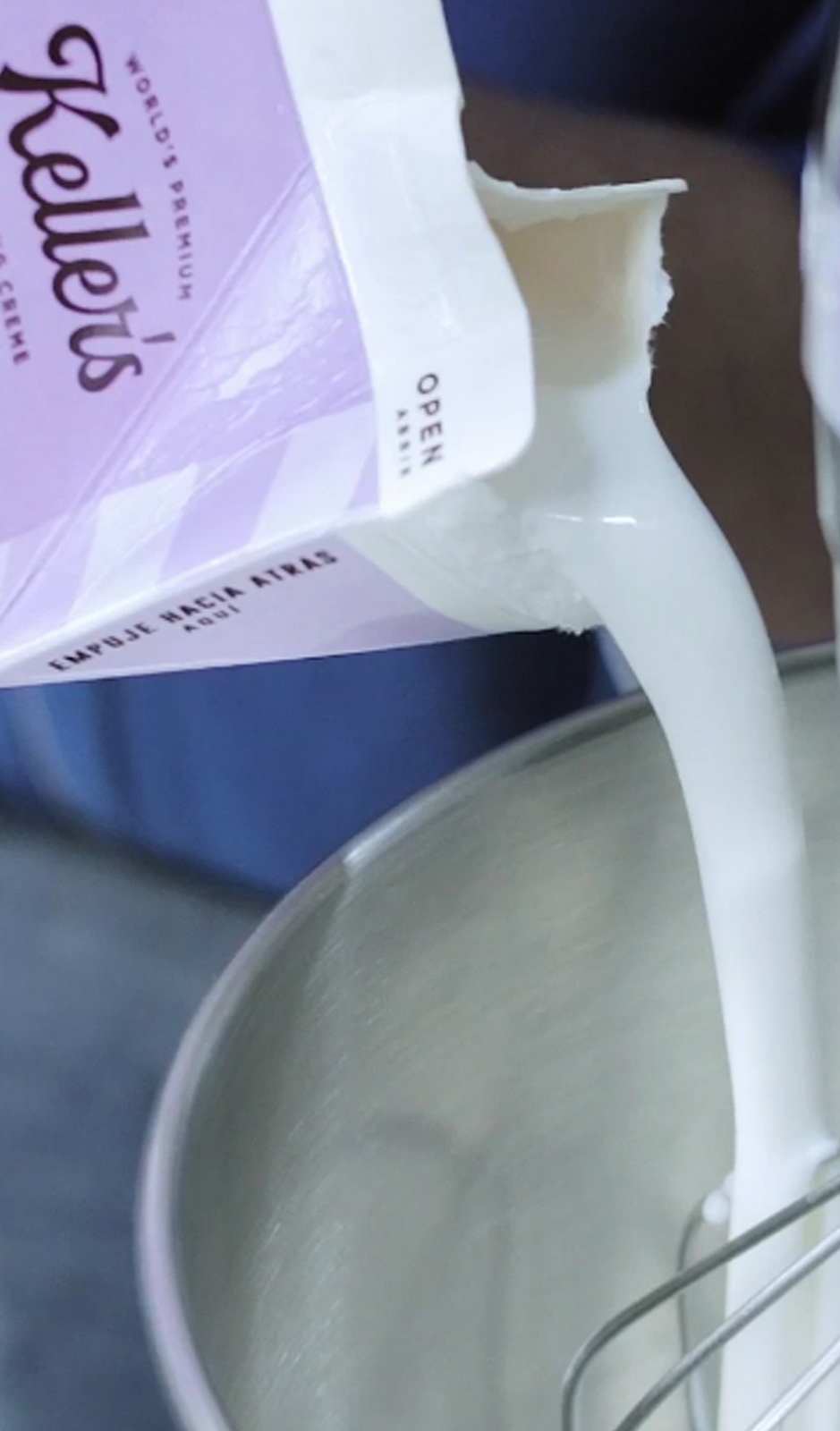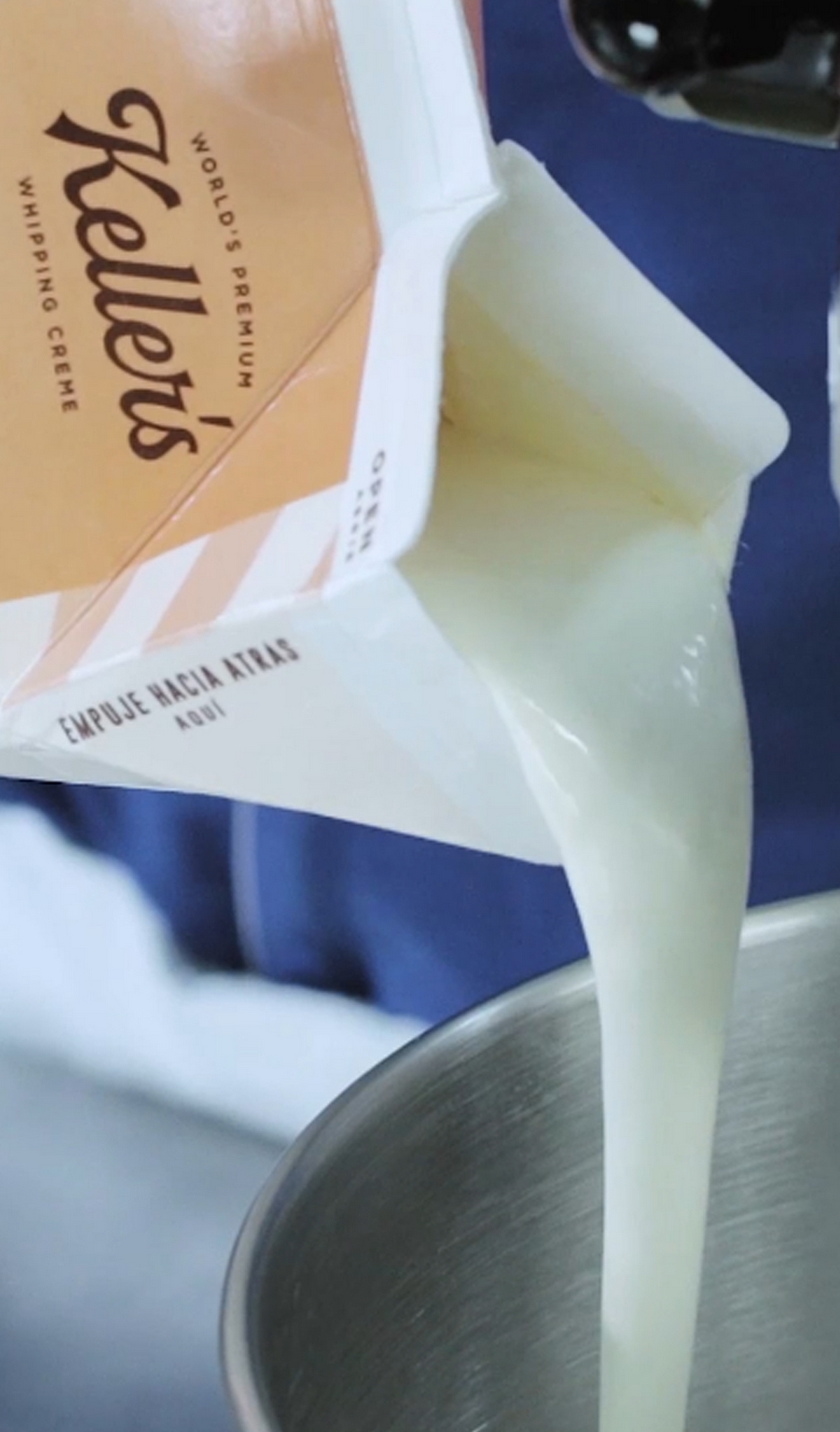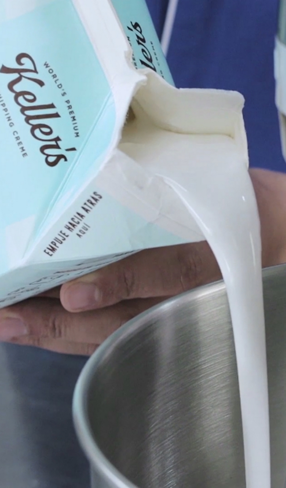 batir o “montar” la Crema Base Keller’s con leche; 1 minuto antes de terminar el